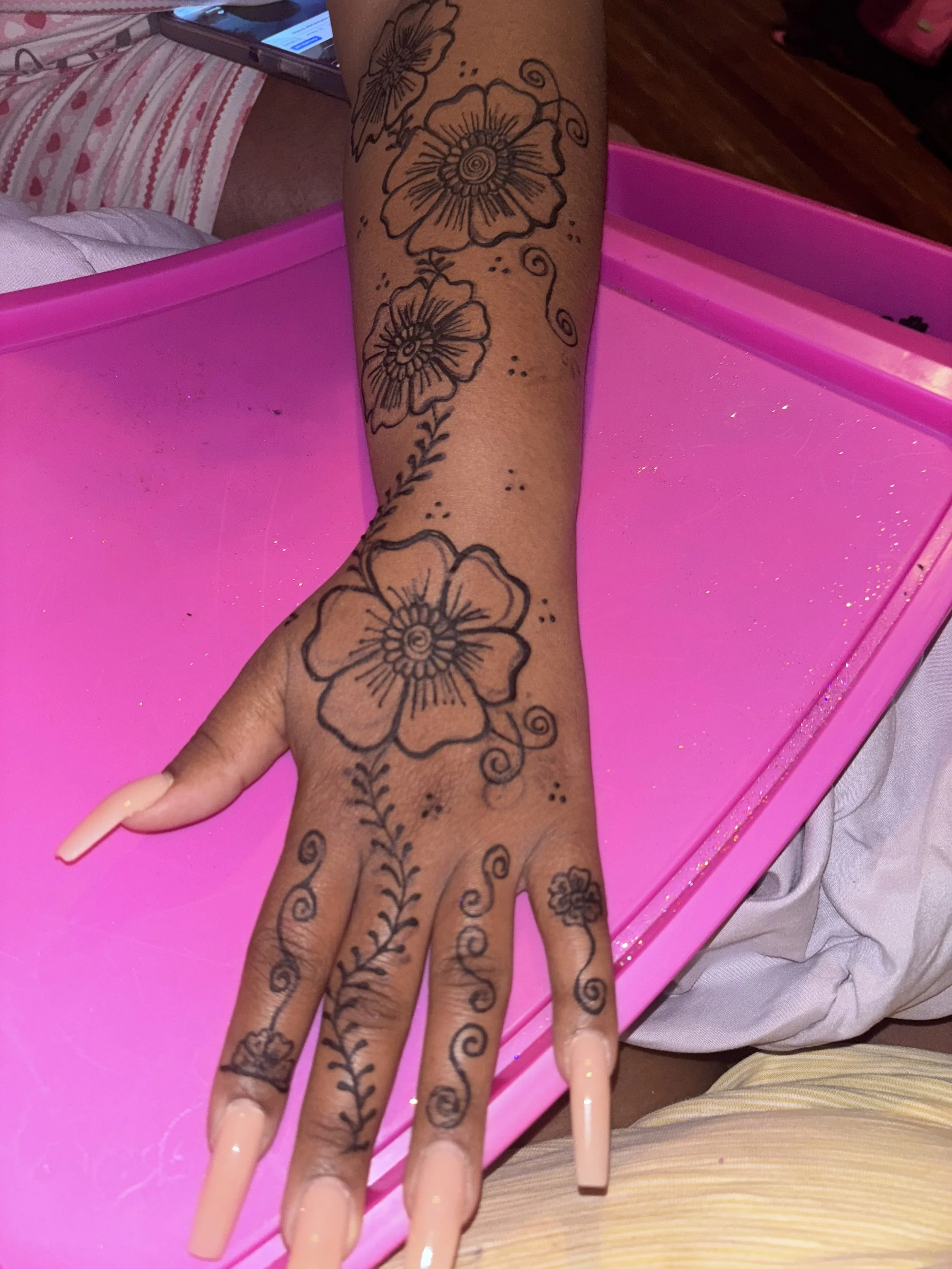 Rooted in cultural appreciation and artistic empowerment, our work invites individuals of all ages to explore the beauty and history behind henna. Whether it’s a vibrant festival, a community workshop, or a one-on-one session, each interaction is designed to be intentional, inclusive, and impactful.